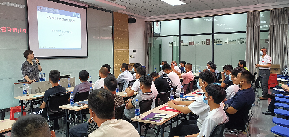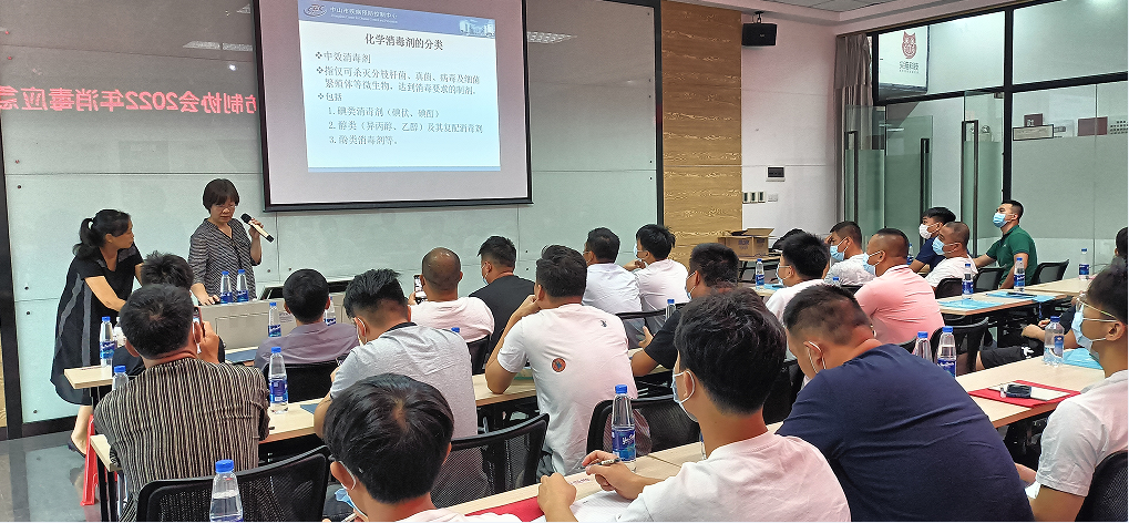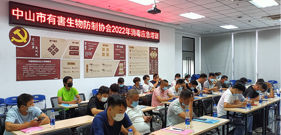 消毒消杀工作是新冠肺炎疫情防控的关键环节,做好消毒消杀工作,是保障群众健康安全的得要措施。为切实提高我会疫情防控组织协调和应急处置能力,全面强化新冠肺炎疫情防控工作,不断增强一线施工人员的消毒消杀业务水平。 2022年9月28日,我会举办了“中山市有害生物防制协会2022消毒应急培训”,培训邀请了中山市疾病预防控制中心的两位专家为学员进行了专业的消毒培训,共有43人参加。 此次培训内容主要包括新冠肺炎疫情期间消毒作业个人防护、消毒剂及其使用、消毒基本知识技术等。上午中山市疾病预防控制中心的专家们精心授课,下午对参训人员逐一进行消毒理论知识考试,对考核合格人员发放消毒培训证。 经过培训,进一步提高了参训人员的专业技术水平,壮大疫情防控消毒队伍,为我会消毒应急储备更多专业技术人员,保障我市疫情防控工作高效、常态化运转。