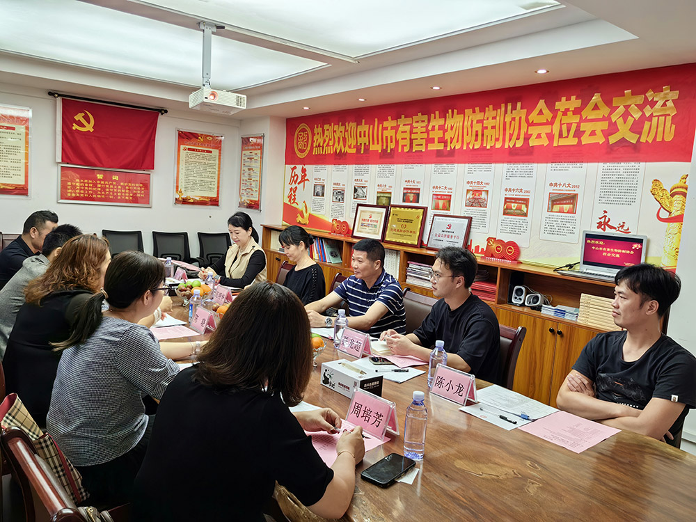 走访活动座谈会上秘书长陈晓对我会一行人的来访表示热烈欢迎和感谢,她详细介绍了中山市韶关商会的基本情况、取得的成绩和商会未来规划,并就商协会的建设提出了建设性的意见。在依法办会、党建工作、规范运作、能力建设、发挥作用、社会评价六大方面分享了经验。 我会副秘书长王敏介绍了中山市有害生物防制协会的基本情况、发展情况。副会长聂龙超、聂享荣就如何建设商协会,商协会之间如何链接以及发展过程中的经验进行了深入而热烈的交流和探讨。